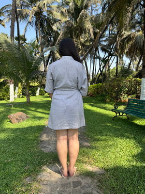 Ash is a classic shirt dress that effortlessly cinches at the waist with ties.