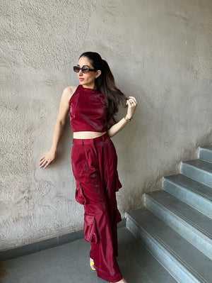 Our Lilac Co-ord is a stylish two-piece set ready to wear. Look your best with cargo pants featuring a variety of pockets, double-cuff hem, and a halter neck detailed top. Be fashionably on point with this unique and trendy outfit.